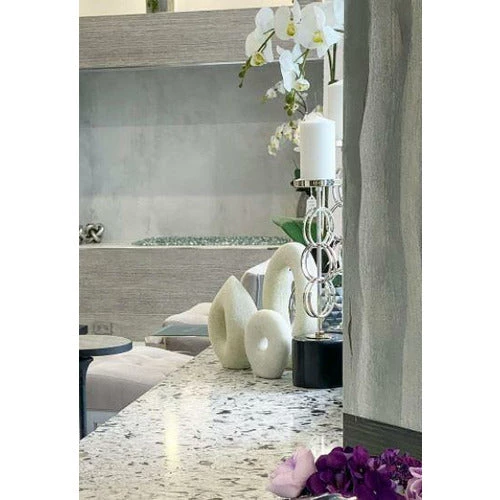 Crafted from rice stone, the expressive form of sculptural art takes shape in this well-formed trio. Showcasing a profile that recalls mid-century design, the sleekness of this varied-height sculptured set works well to curate a tabletop gallery. Finish may vary.