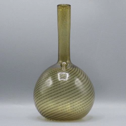 Handblown Italian Amber Lattice Swirl Glass Vase