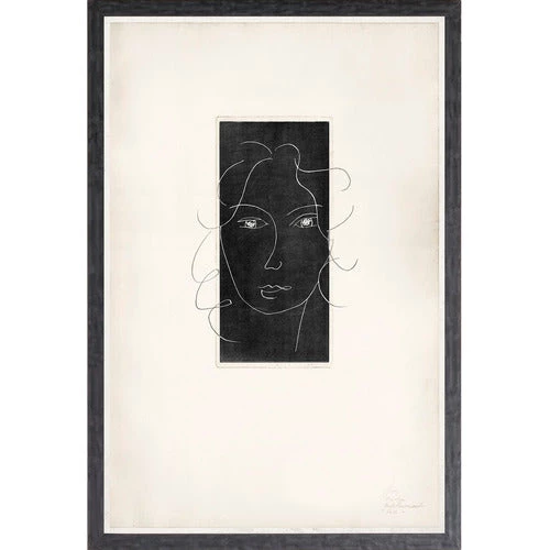 Carefully considered Matisse-style line drawings. These two simple portraits speak volumes. Complemented with a satin black, softly rippled profile.