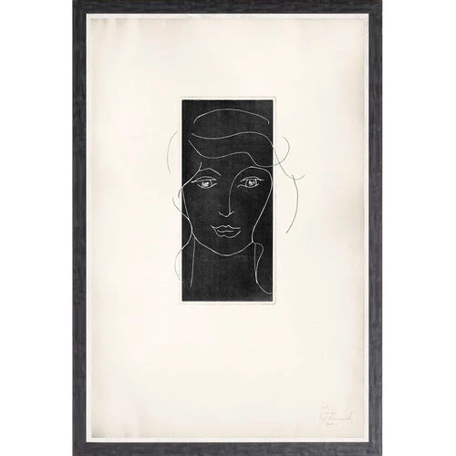 Carefully considered Matisse-style line drawings. These two simple portraits speak volumes. Complemented with a satin black, softly rippled profile.