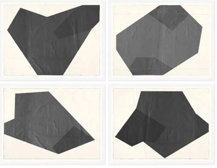 The possibilities are almost endless with these contemporary and playful, folded-paper shapes. In a variety of geometric shapes on beautiful vintage paper textures. Lovely on their own or fill a wall with 3 tones of smoky grays and different shapes. Perfectly framed in an ivory-washed maple with a contemporary profile.
