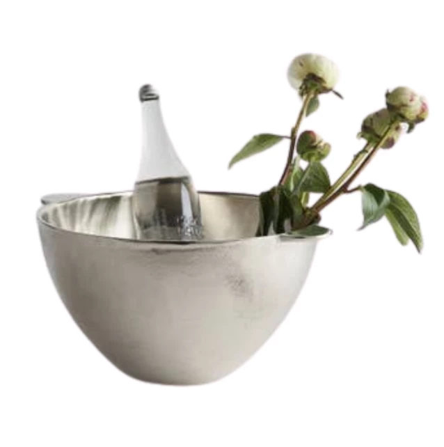Get the celebration started with this substantial party bucket! This amply-sized vessel keeps your abundant beverage options chilled and available, so guests can help themselves. The rounded, modern design works well indoors and out, and smooth tab-like handles make transporting it a cinch. When not on the party circuit, this sturdy cast aluminum bucket can work as a display bowl or storage piece.