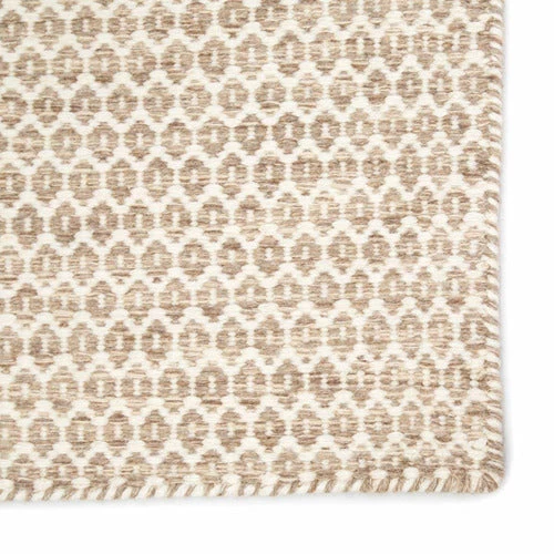Minute details and a 100% wool construction define the relaxed yet stylish appeal of the Monterey Rug. This durable dhurrie rug boasts a small-scale circular lattice design. The neutral ivory color palette grounds contemporary spaces with a light and airy scheme.