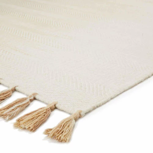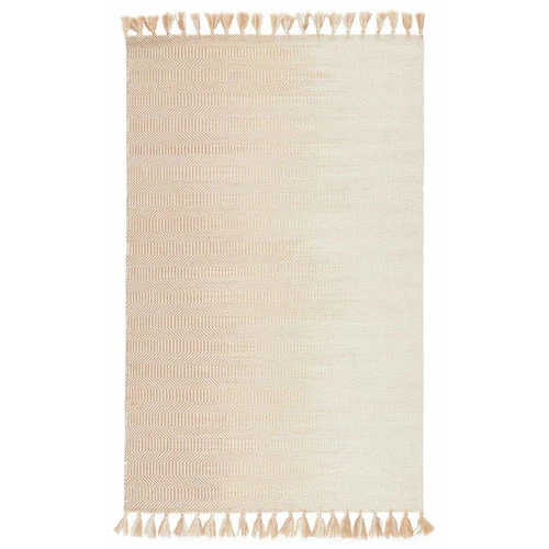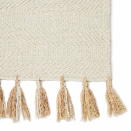 The Malibu rug mixes a Moroccan design with a modern ombré aesthetic for a worldly dose of design. This durable flatweave rug features a stunning labyrinth motif in a light neutral colorway. Each hand-crafted rug is unique with shifting tones from soft taupe to solid ivory for an ombre effect. Boho knotted fringe adds texture-rich detail to this versatile wool accent.