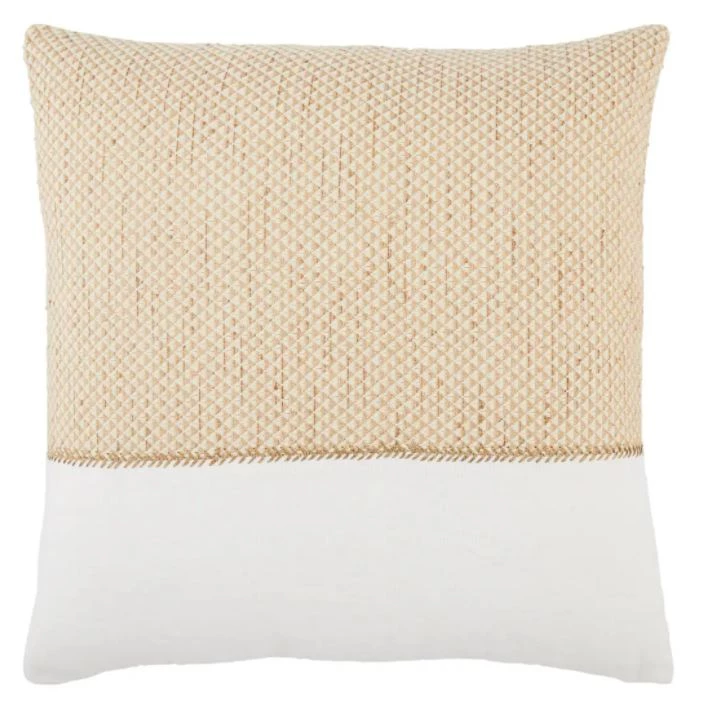 Sophisticated simplicity defines the texturally inspiring Taiga collection. Crafted of soft linen, viscose, and cotton, this pillow boasts a mix of pattern-rich and embroidered details. Golden and white tones lend a bright and airy vibe to any space.
