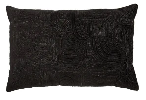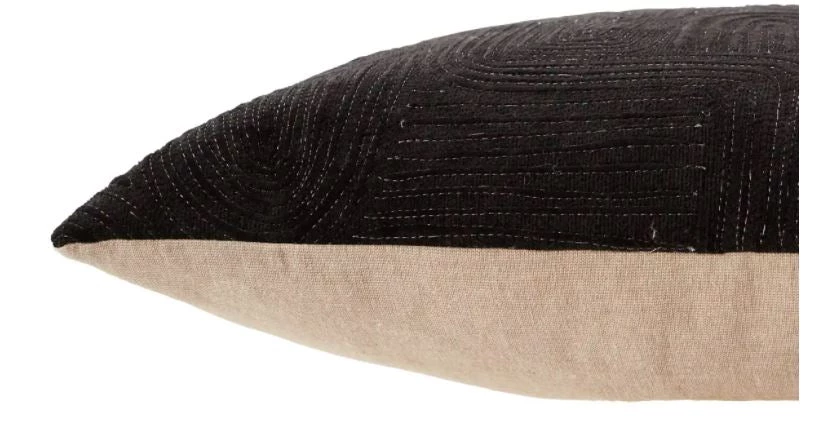 Soft in feel and structured in design, the Deco pillow collection by Nikki Chu blends Art Deco details and texture-building embroidery that is easy to mix and match with any decor. The Pfeiffer lumbar pillow showcases a whimsical arch and circle pattern shaped by silver metallic threadwork that shines on the velvety black backdrop. This chic cotton accent complements contemporary decor the perfect dose of luxe appeal and on-trend style.