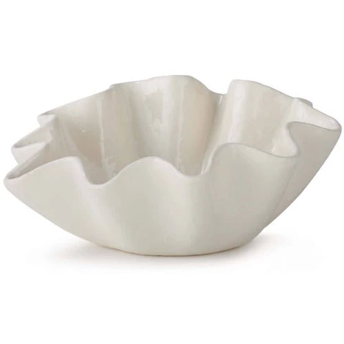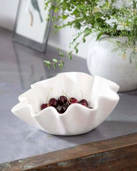 This bowl was carefully crafted by skilled craftsmen who has mastered the technique of creating timeless ceramics. With it’s creamy white finish, and the ruffled edges it will playfully interact with any space.
