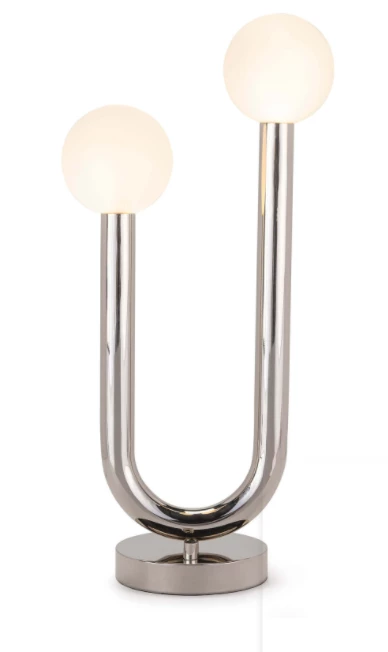 The Happy Table Lamp is a unique mix of modern and playful. Happy’s simple, asymmetrical charm creates uplifting illumination perfect for an entryway, bedroom or living space. The lamp’s metal tube frame, cylindrical base and contrasting matte white glass globes create an elevated take on a playful shape. Create the perfect amount of custom illumination in your space by using the lamp’s dimmer switch.